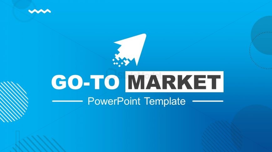 This slide design represents the cover image of a Go To Market Strategy presentation compatible with PowerPoint and Google Slides. The slide background uses tones of blue and white colors, and it is part of the professional Go to Market Strategy presentation template.